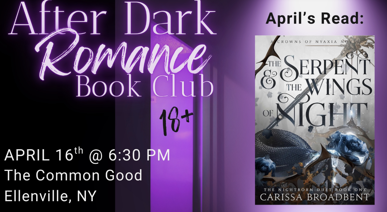 Romance Book Club Meetup Thursday, April 16, 2026 6:30 PM 7:30 PM The Common Good 119 Canal Street Ellenville, NY, 12428 United States (map) Google Calendar ICS